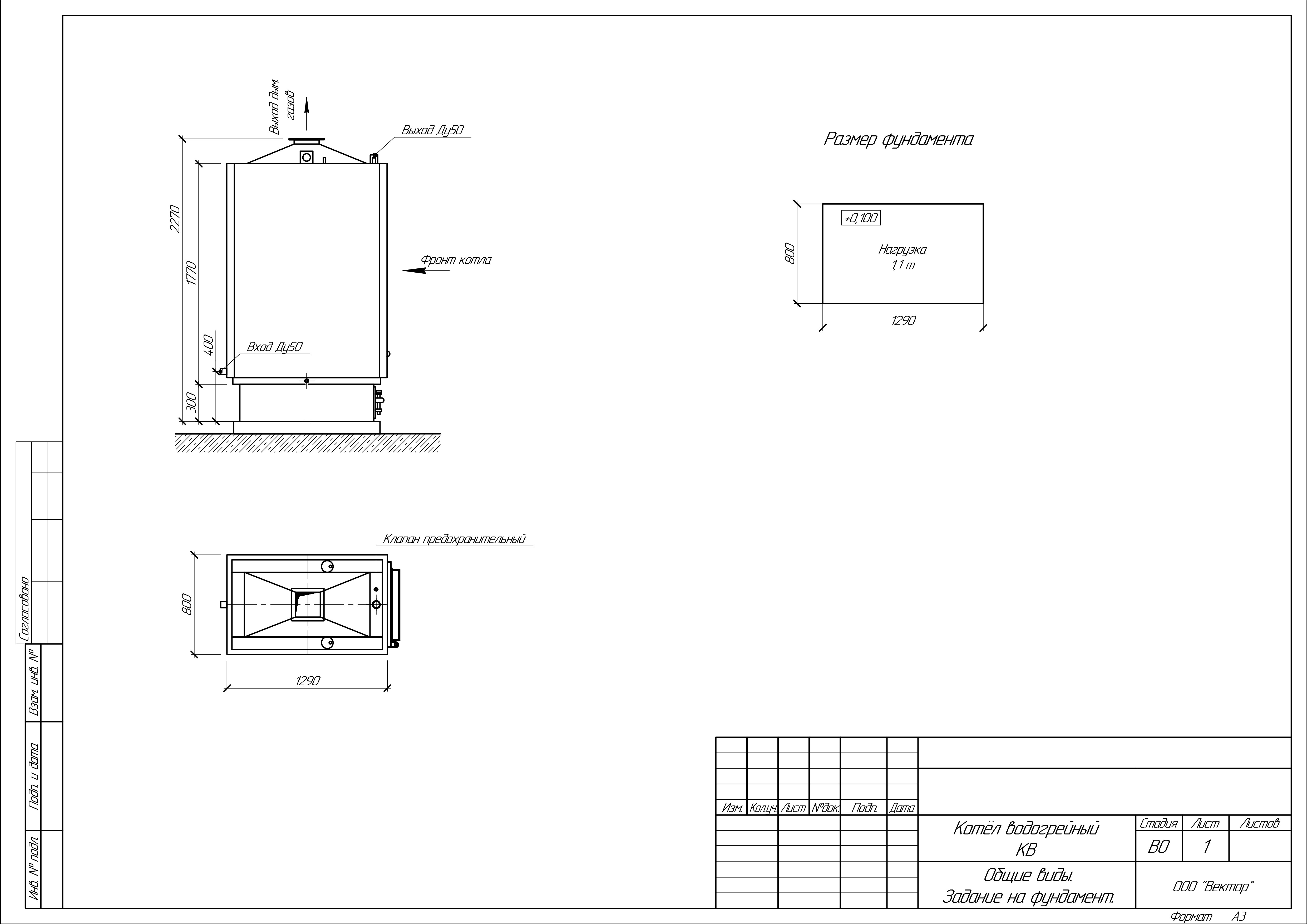 Масса котла (без воды): 800 кг